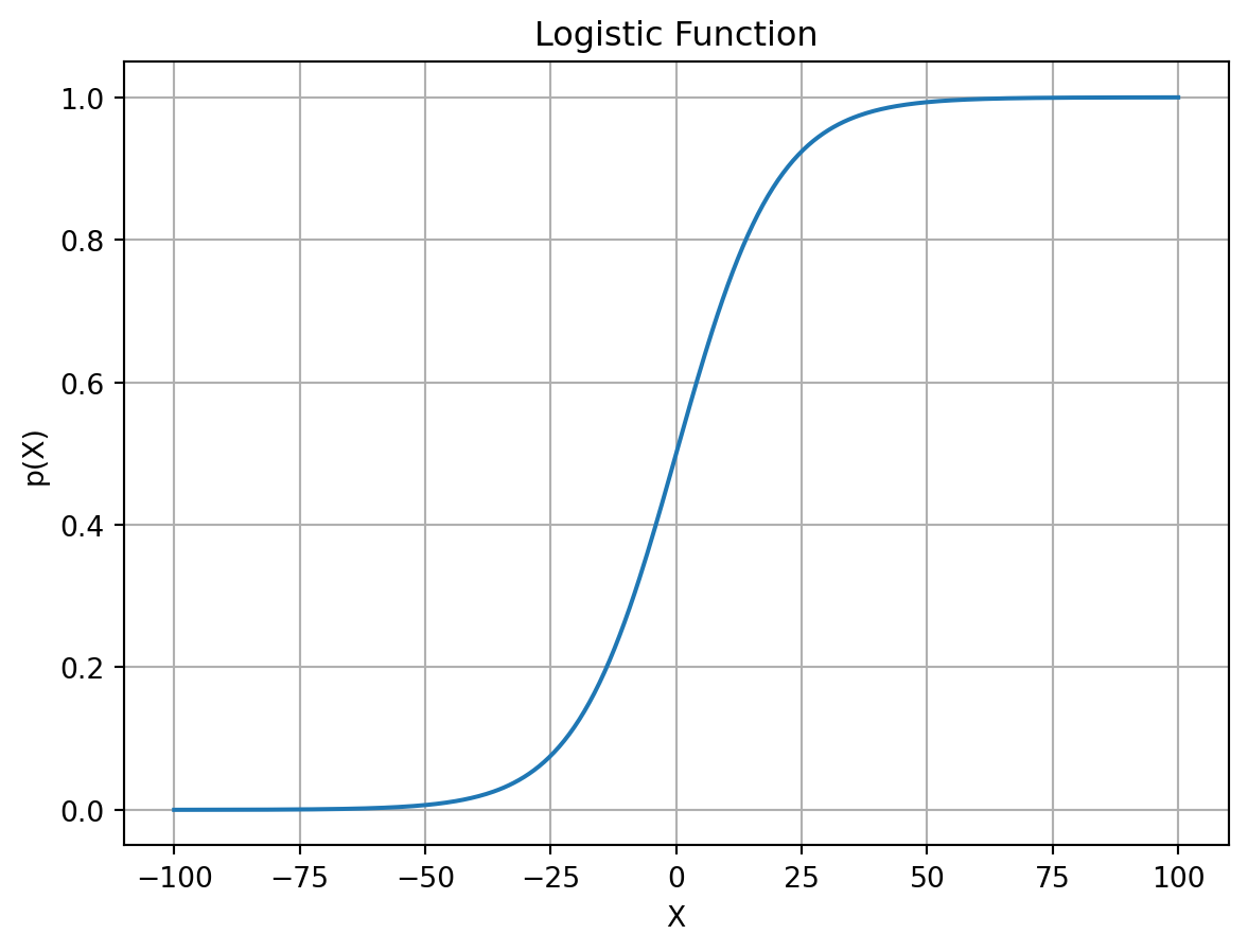 p_X = 1 / (1 + np.exp(-(beta_0 + beta_1 * X)))