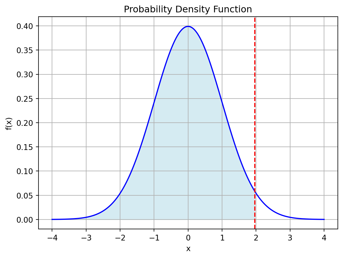 print(X.cdf(1.96))0.9750021048517795