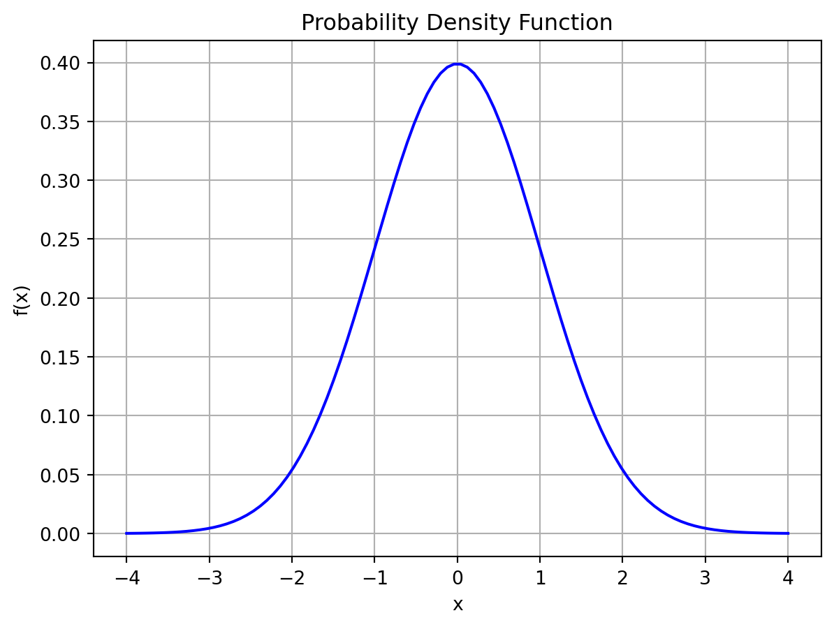 X = norm(loc=0, scale=1)この確率変数 \(X\) の確率密度関数を次の図に示す.