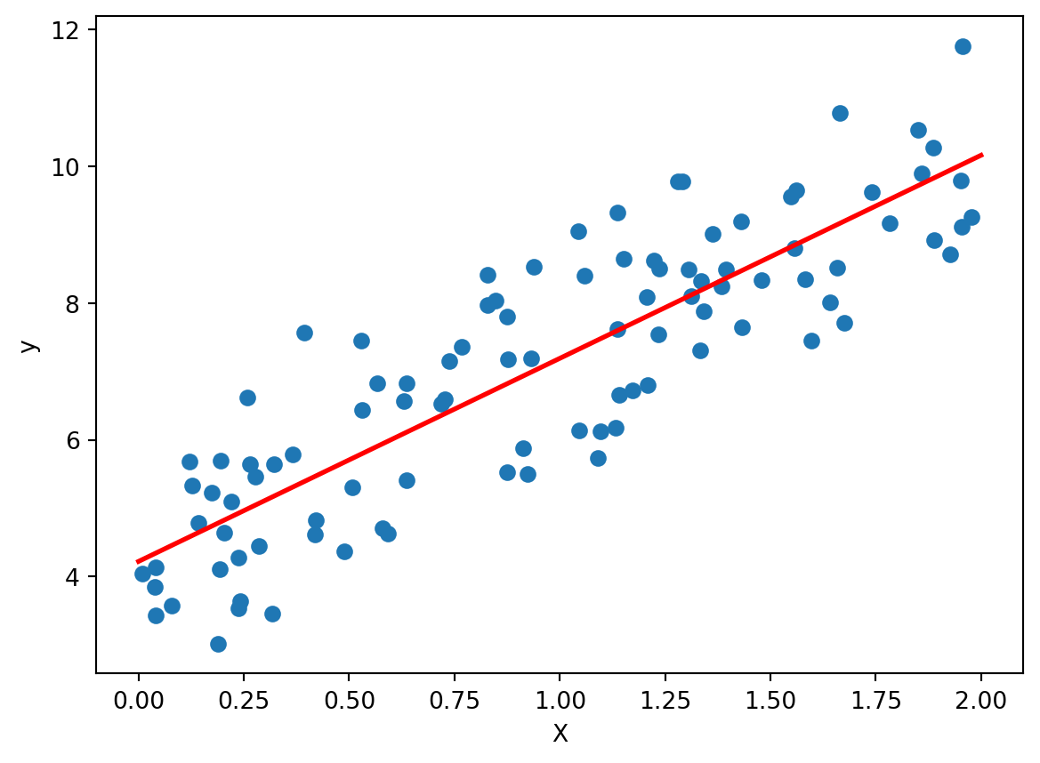 y = 4 + 3 * X + np.random.randn(100, 1)