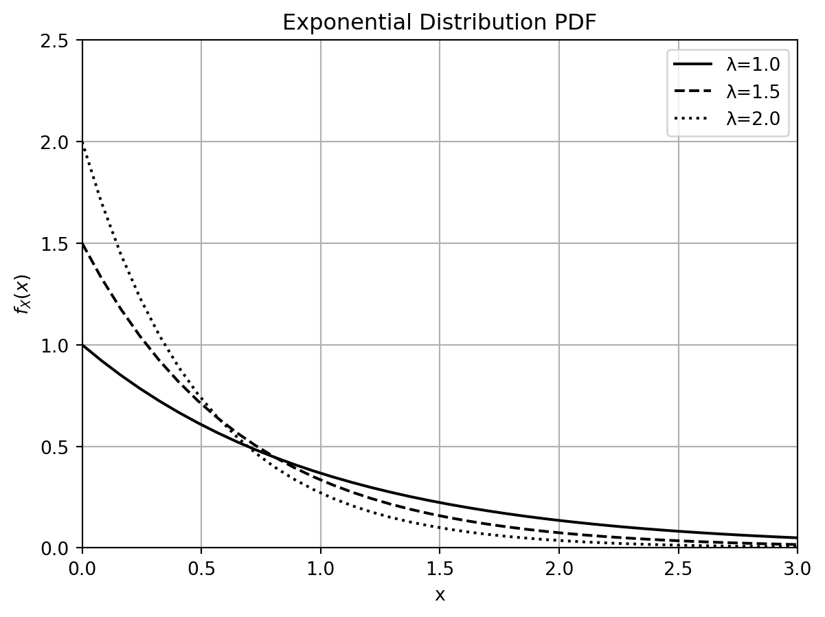 連続型確率変数 \(X\) が指数分布(exponential distribution)に従うとき,\(X\) の確率密度関数は