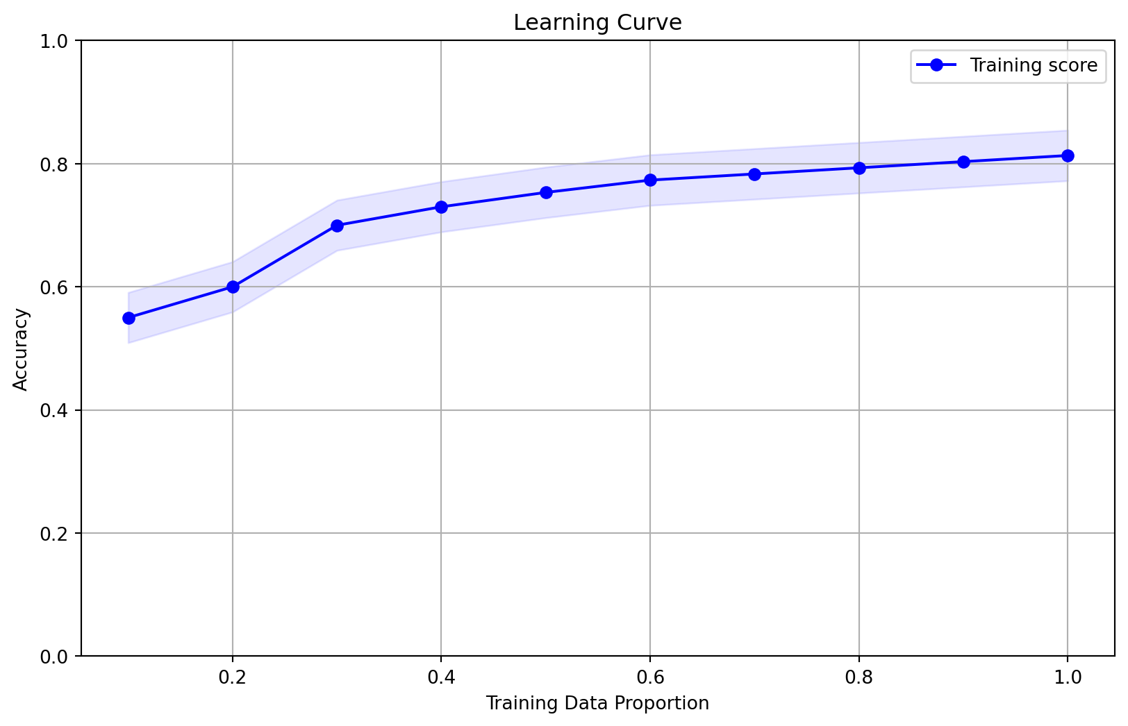 train_scores_2 = np.array([0.55, 0.6, 0.7, 0.73, 0.76, 0.78, 0.79, 0.8, 0.81, 0.82])