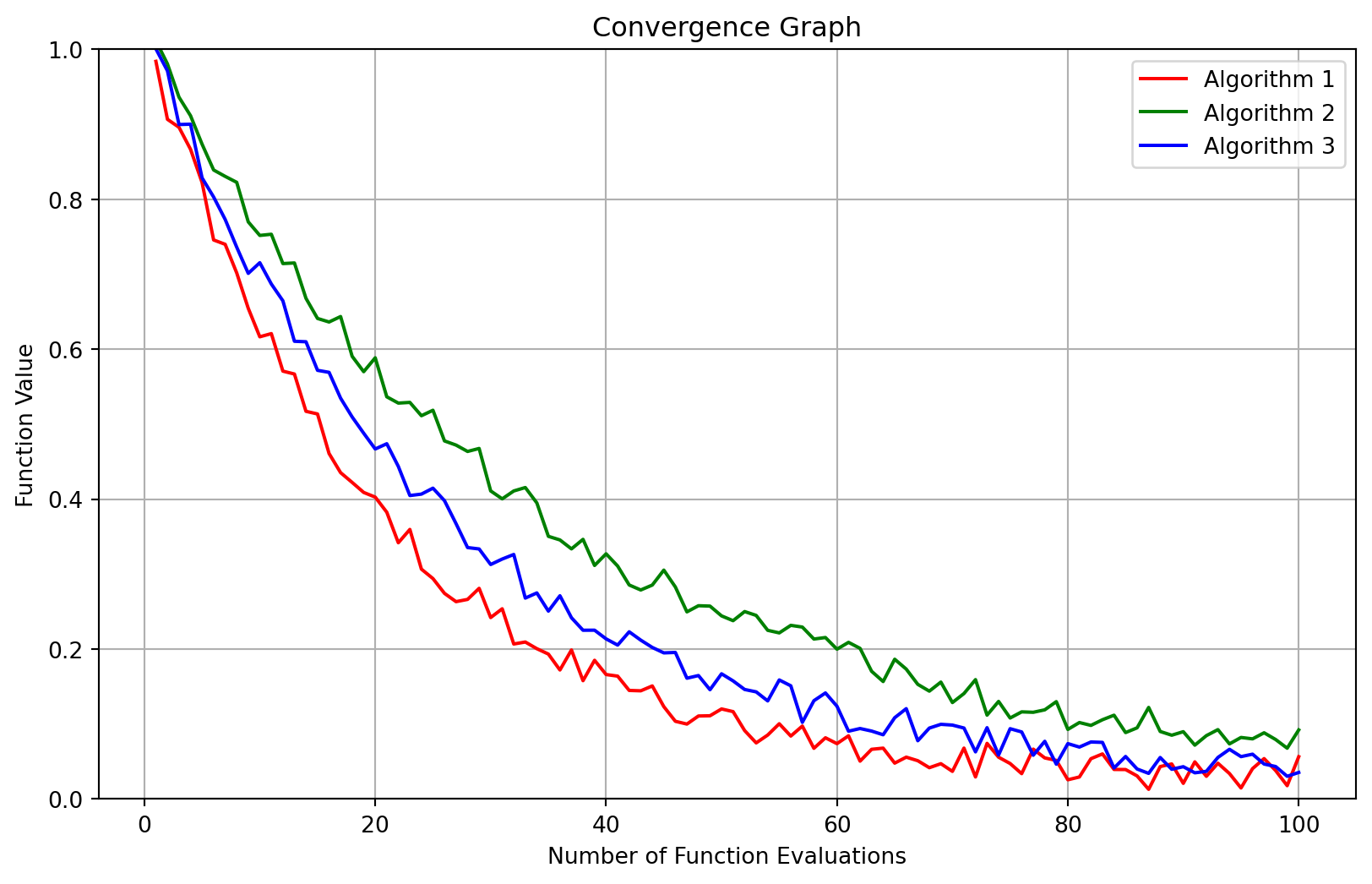 algorithm_3 = np.exp(-0.04 * generations) + 0.05 * np.random.rand(100)