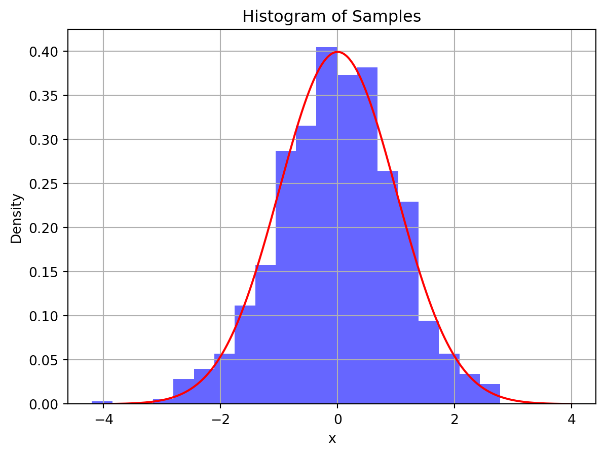 samples = X.rvs(size=1000)これらのサンプルのヒストグラムを次の図に示す.