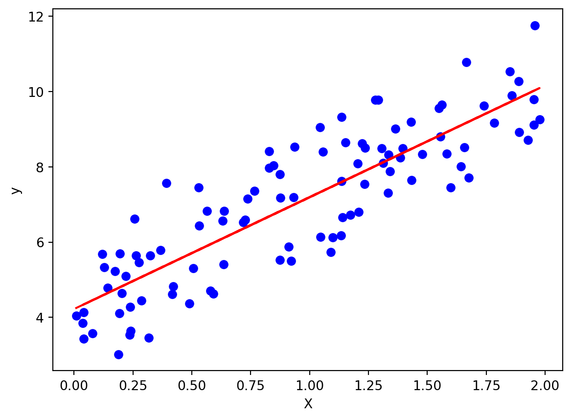 y = 4 + 3 * X + 0.1 * np.random.randn(100, 1)